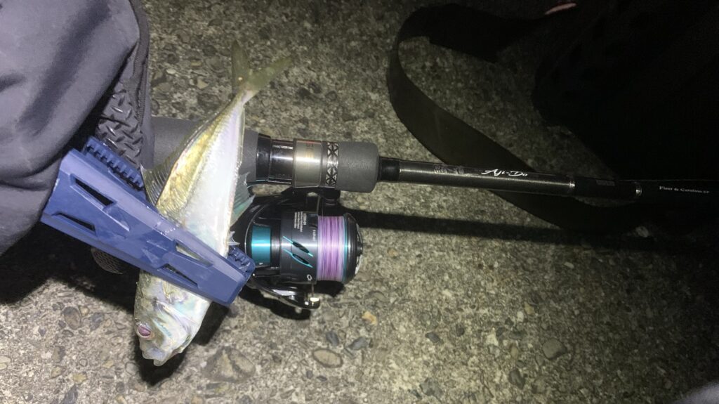 珍しく?横風ビュービューだったので3gのシンカーつけてボトム一点張りしてました。運良くマヅメの回遊に当てられましたね。